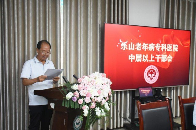 2025年9月23日下午,乐山老年病专科医院召开中层以上干部会议。精诚医疗集团董事局主席李卫军、总裁张戎、财务总监吕辉、秘书长曹俊恒出席会议,乐山老年病专科医院中层以上干部参加会议。董事长彭代之主持会议。